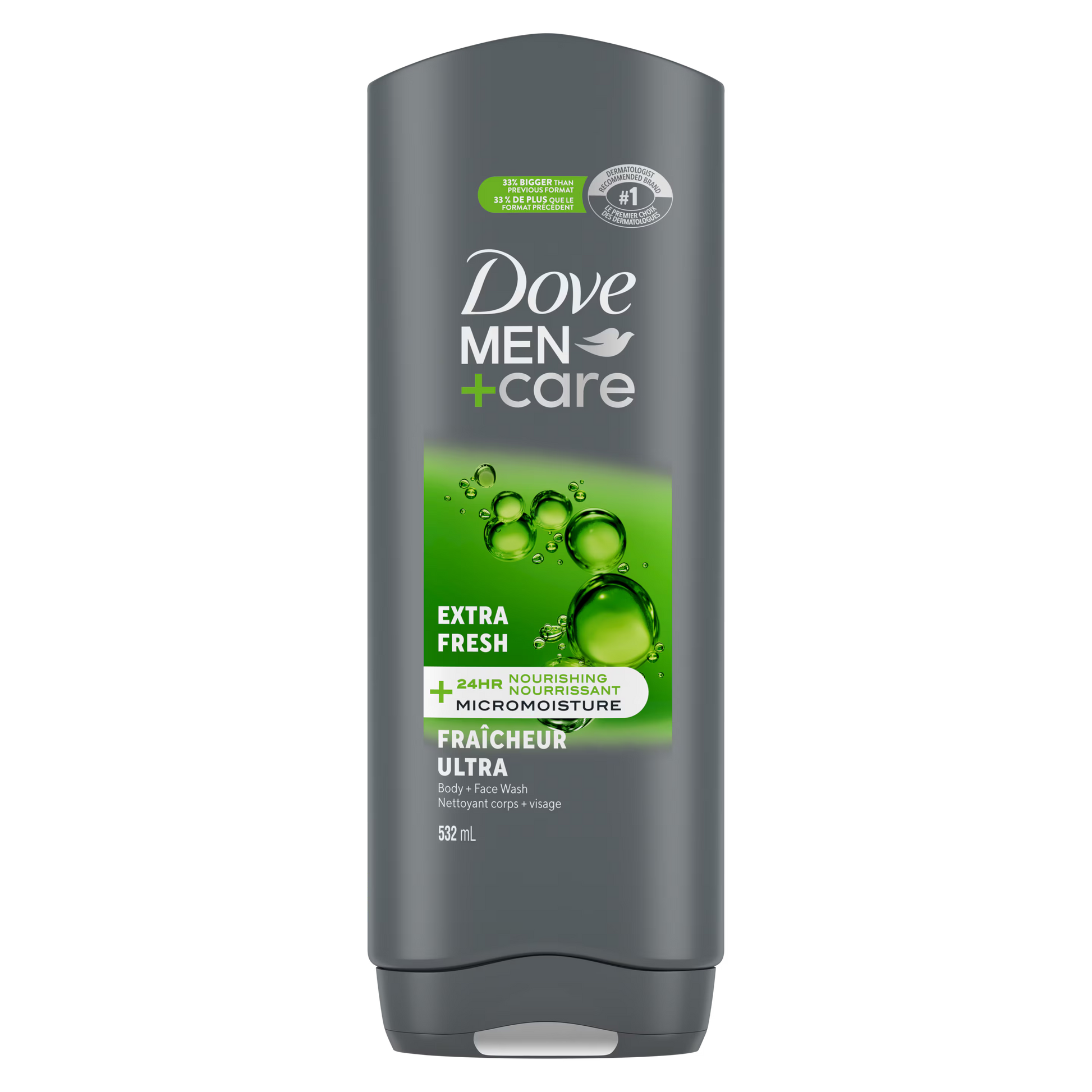 The Dove Men+Care Extra Fresh Body + Face Wash is designed for men who want effective cleansing and lasting freshness. This hydrating formula protects skin against dryness while providing a revitalizing, cool clean.